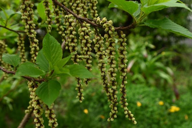 1.服部しづ 2.轟町5丁目広場 3.令和5年4月7日 4.「不思議」たれさがって、のれんのように見える。 5.キブシ