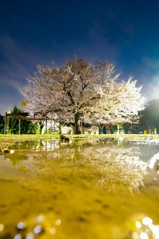 1.千葉愛の教会写真クラブ 2.穴川中央公園 3.令和6年4月10日 4.「夜桜リフレクション」 5.桜 |