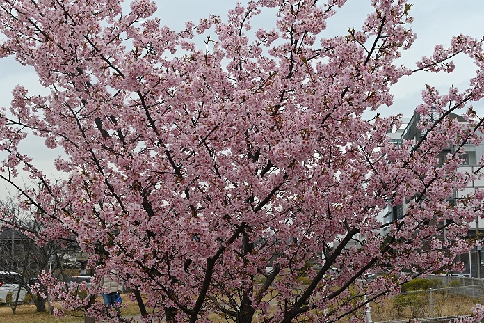 1.服部しづ 2.穴川 国道16号線沿い 3.令和7年4月1日 4.「一本の河津桜」満開! 5.河津桜