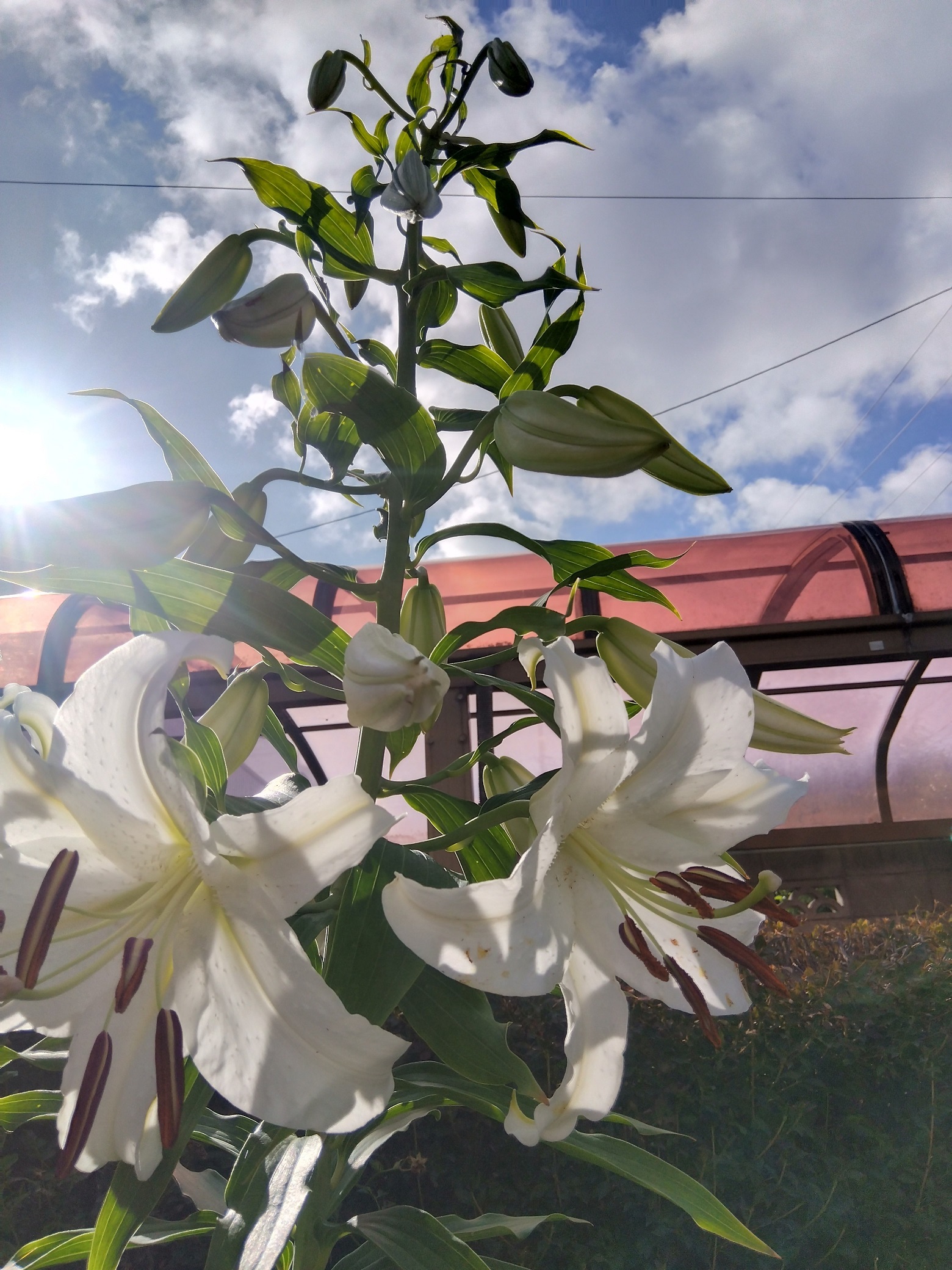 1.米元加奈子 2.園生町 3.令和7年7月10日 4.「天まで届け」球根から大切に育て、私の背より高くなりました。 5.カサブランカ |