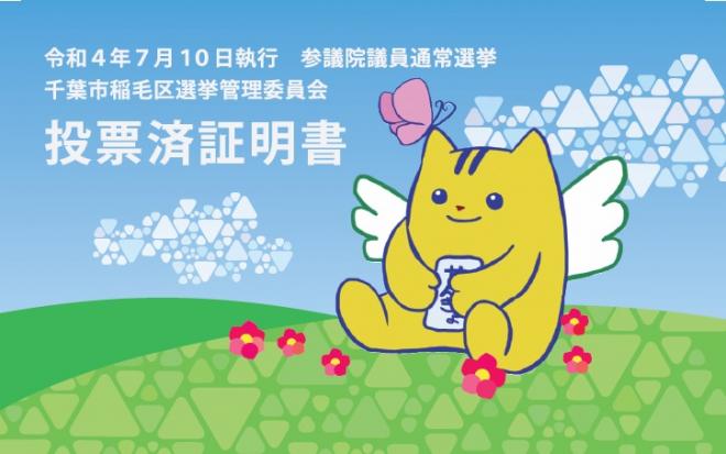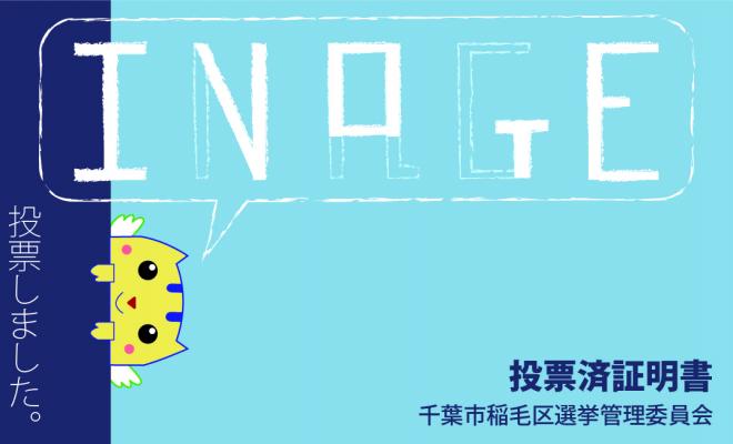 学生がデザインした投票済証明書を令和4年7月の参議院選挙において、稲毛区の期日前投票所で交付しました。(約2,000枚)