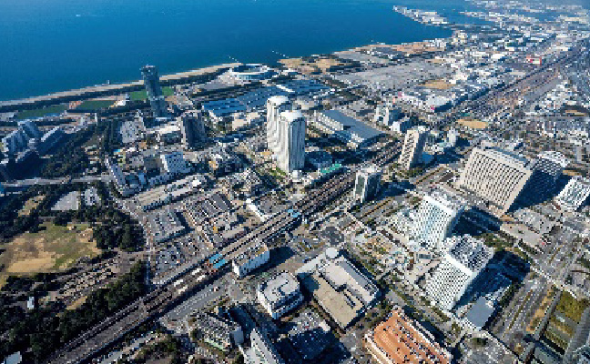 現在では、多種業務機能が集積した首都機能の一翼を担う大都市として、また、世界に開かれた国際情報都市として、著しい発展を続けています。