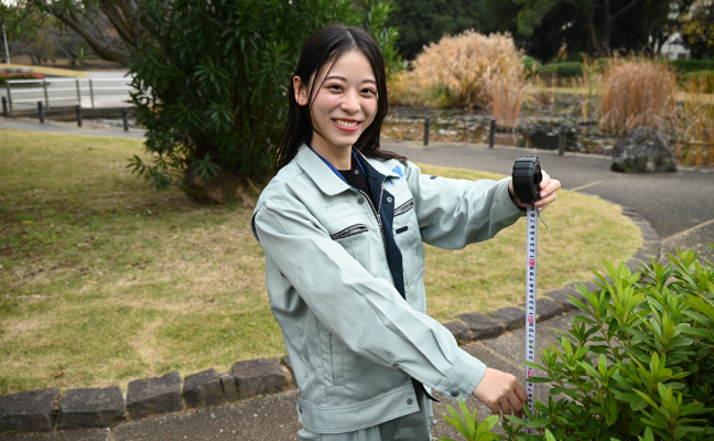 頼られる人になるために、造園分野の知識をつけるだけでなく、いつも笑顔で過ごし、周りの人と積極的にコミュニケーションをとることを意識しています。