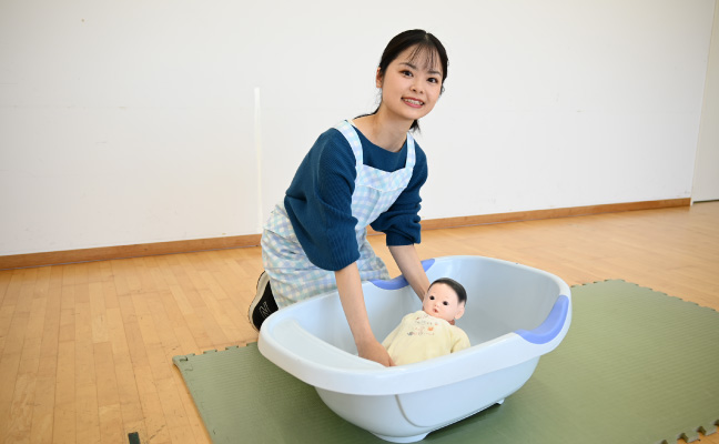 児童の健診や保健指導、保育所内の感染症対策等の保健業務の他、0歳1歳児のクラス担任として保育も行っています。