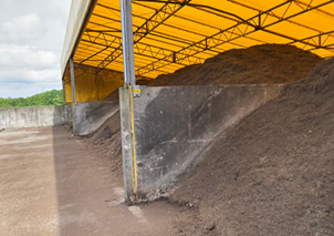 投入した生ごみの3倍にあたる量の千葉県産の剪定枝などを投入し、24時間365日休むことなく攪拌と通気を行いながら約3週間かけて、堆肥へと