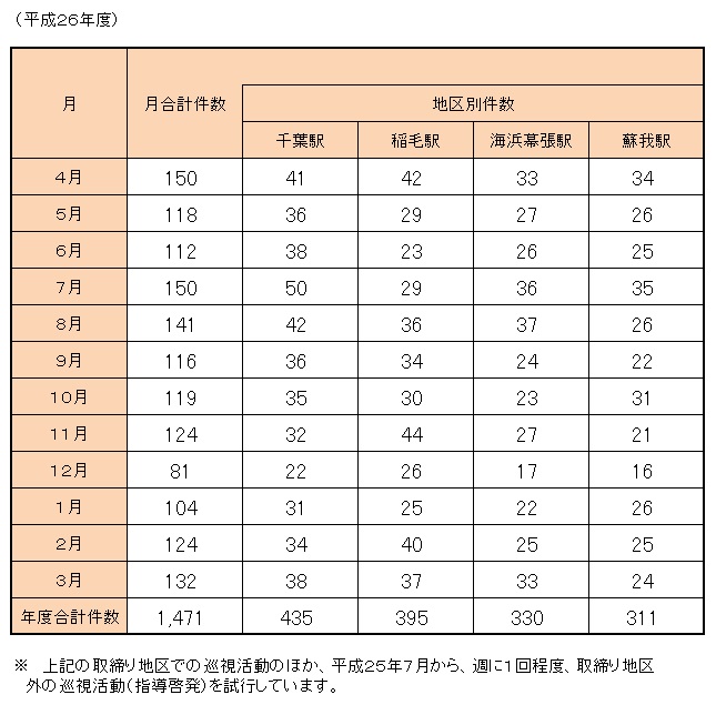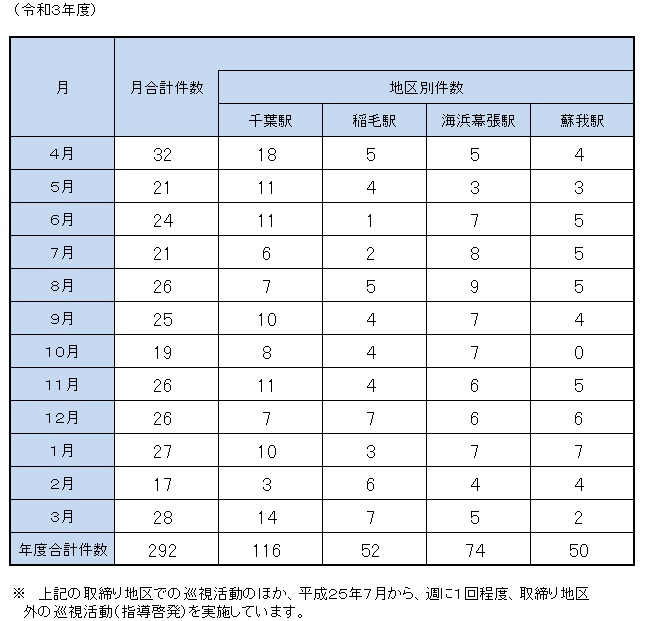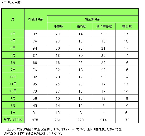 なお、地区内では、路面標示などにより周知に努めています。喫煙、ポイ捨て対策の強化の要望が多いことから、JR蘇我駅周辺地区を新たに指定し、JR千葉駅東口地区については、中央公園まで含めることとしました。取締り地区では、巡視員が巡回するとともに、条例の周知啓発を実施しています。