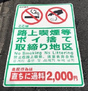 | 取締り地区内 | 2,000円の過料が科されます。 | |