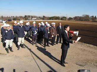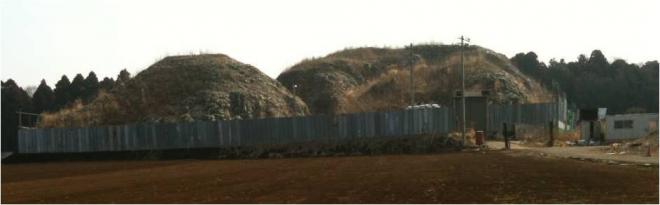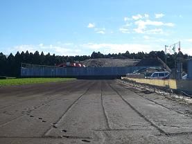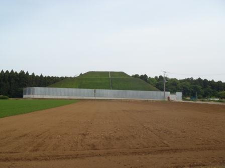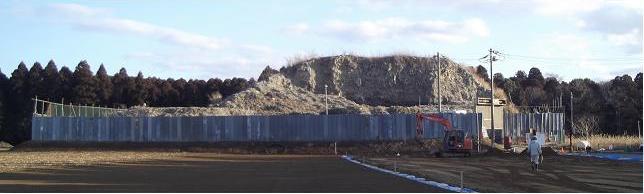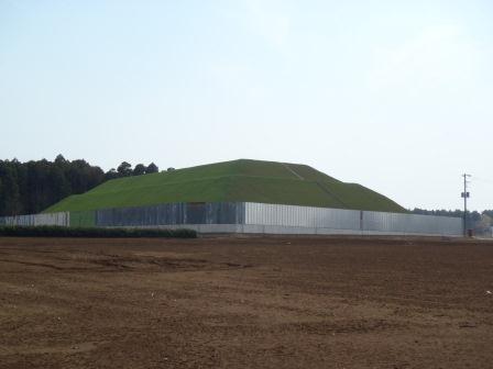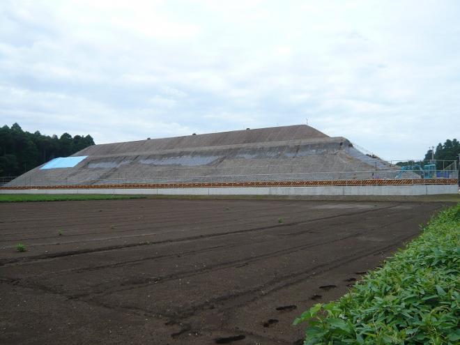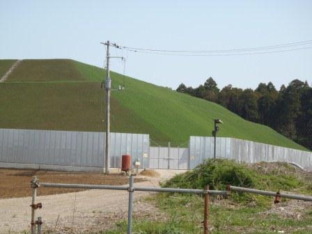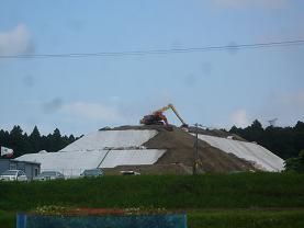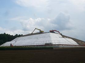 平成24年12月以降、ガス抜き管設置工・廃棄物整形工・キャッピング工(遮水シートと保護マットの設置工)等を進め現在は覆土工に入っております。