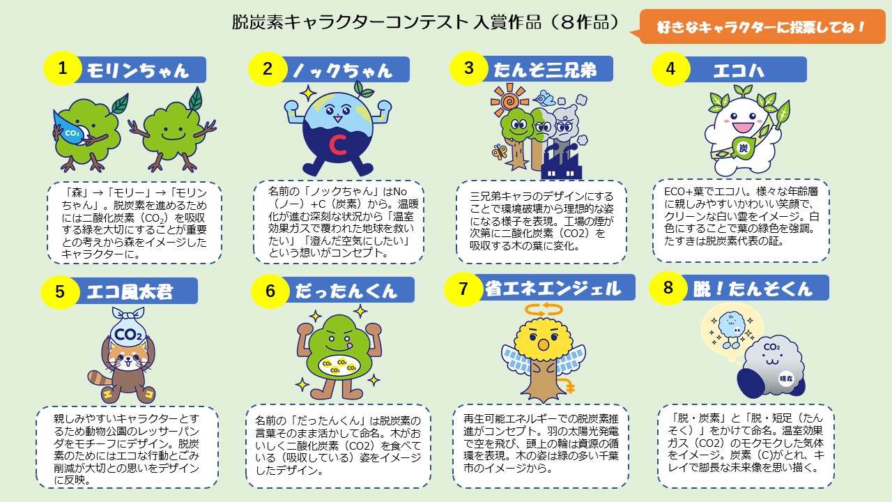 市民投票により最優秀作品に選ばれたキャラクターは千葉市公認の脱炭素キャラクターとして採用!