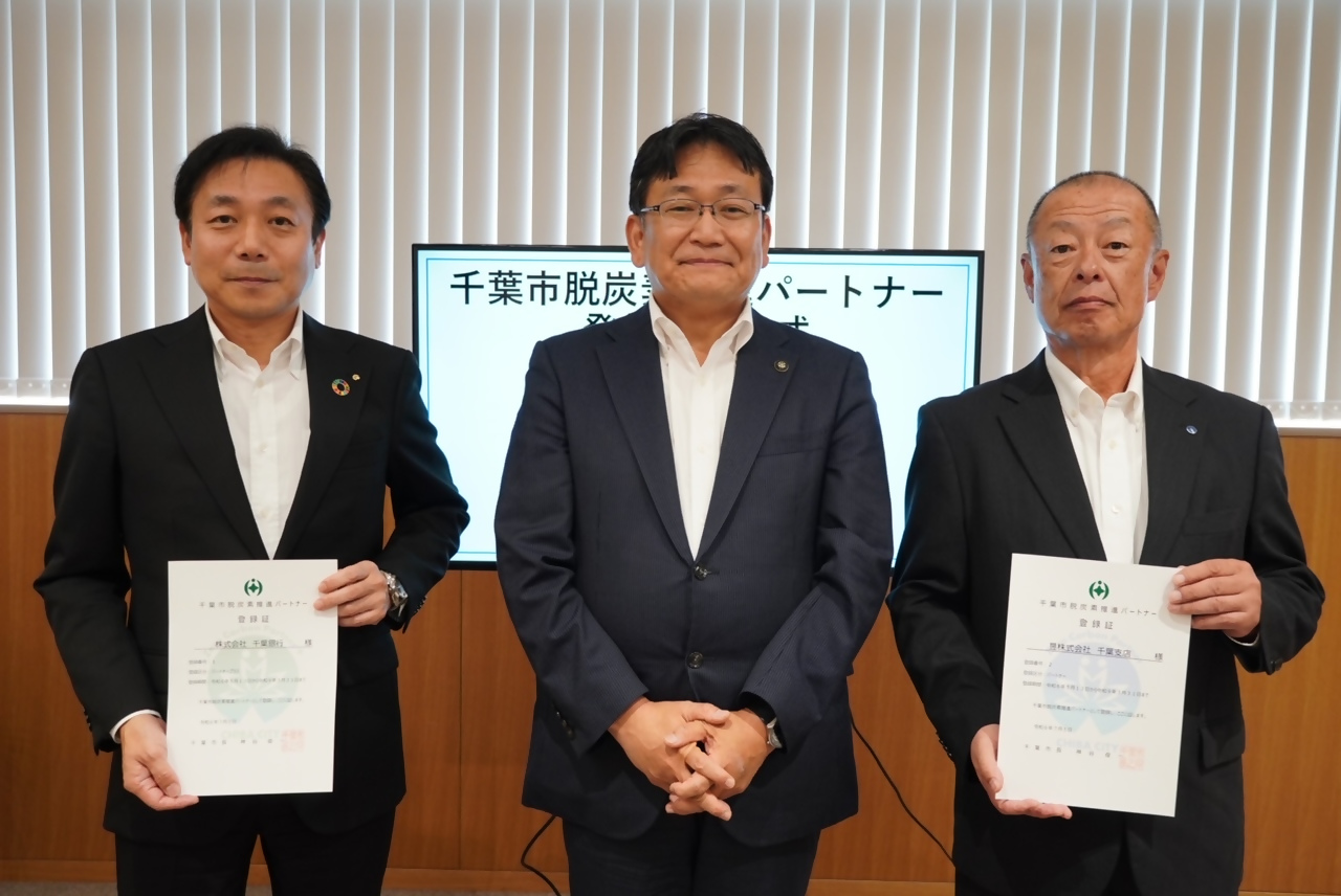 (写真左から、株式会社千葉銀行様、千葉市長、昱株式会社千葉支店様)