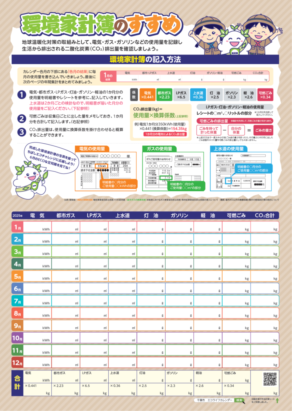 1月から12月までの環境家計簿を完成させて、1年間で自宅から排出しているCO2を集計して報告しよう!
