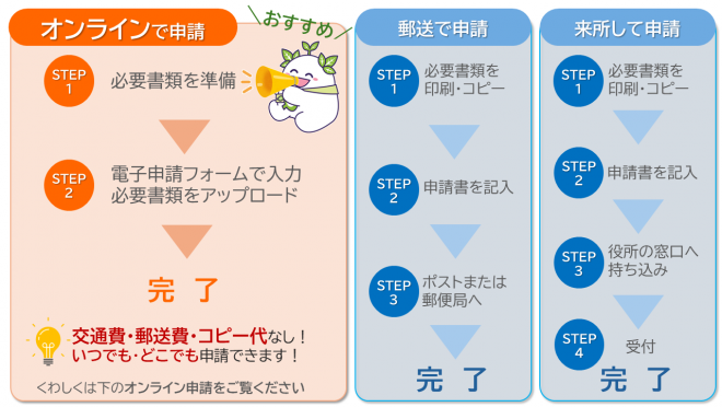 申請方法は3種類あります。各申請方法については以下をご確認ください。
