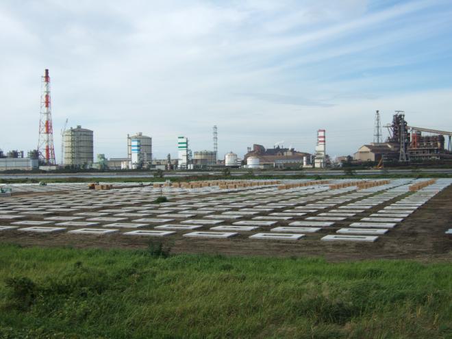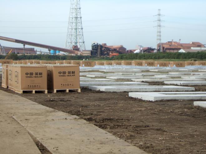 <平成25年10月現在の状況:基礎工事完了・太陽光パネル搬入>