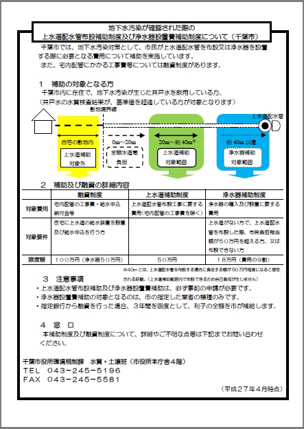 【個人向け】 地下水汚染が確認された際の補助制度等の概要