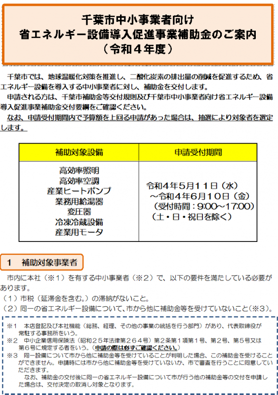 【事業者向け】 中小事業者向け省エネルギー設備導入促進 事業補助金のご案内 |