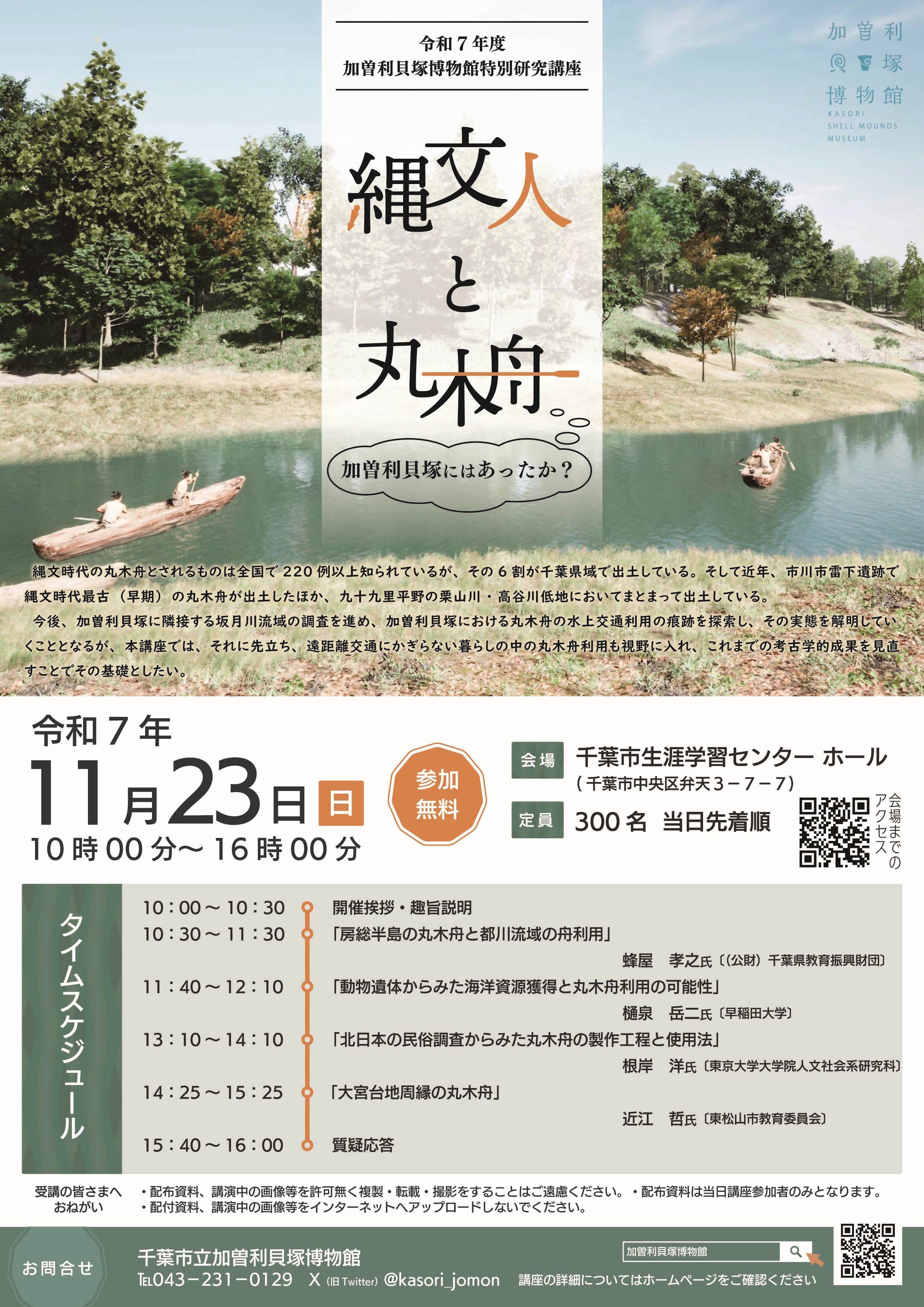 千葉市立加曽利貝塚博物館 > お知らせ > 【終了しました】特別研究講座「縄文人と丸木舟ー加曽利貝塚にはあったか?ー」