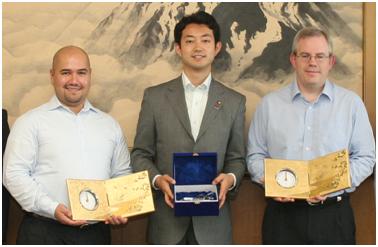 とHTCアジア会長のフィリップ・フレアー氏(右)と熊谷市長(中央)