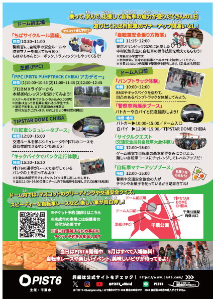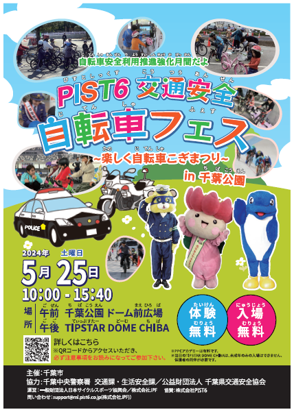 このたび、5月の自転車安全利用推進強化月間に合わせ、千葉中央警察署や公益財団法人千葉県交通安全協会と連携し、交通安全イベント「PIST6交通安全自転車フェス」を実施しますので、お知らせします。