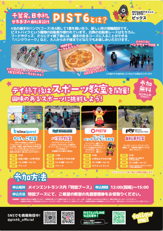 このたび、PIST6の開催に併せて、多彩なスポーツアクティビティを通じて、子どもがのびのびと体を動かせるイベントを実施しますので、お知らせします。