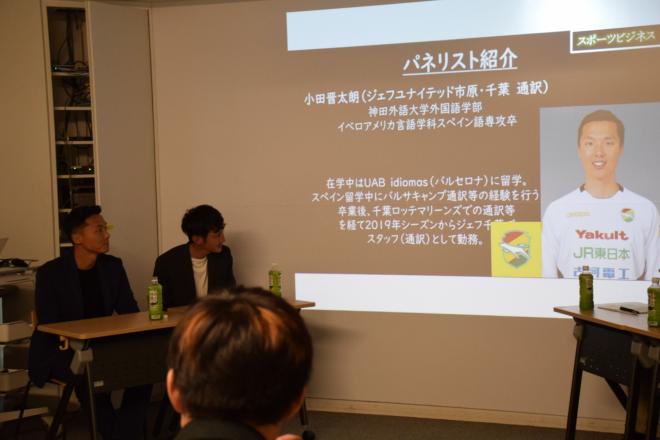 ジェフ千葉、柏レイソル、VONDS市原、レノファ山口など県内外のクラブチームから「通訳」を主な仕事とするゲストを招き、パネルディスカッションを実施しました。