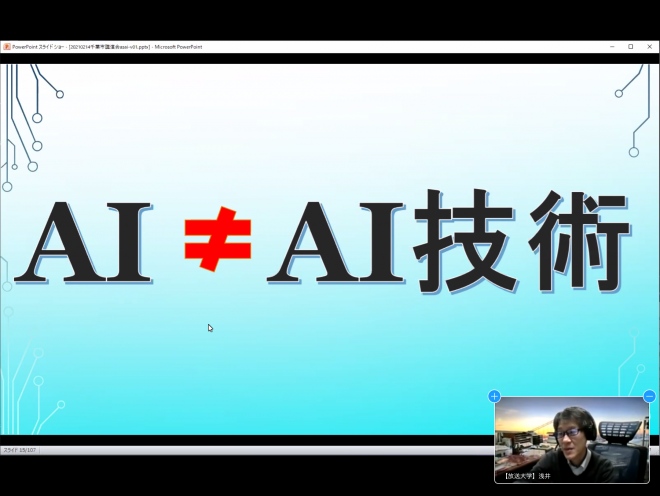 そもそもAIとは何なのか、なぜ現在AI技術が発展しているのか、AI技術を活用して何ができるのか、生活や仕事はどう変わるのか、などについて、具体的な事例も踏まえながら学びました。