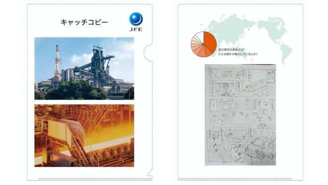 子どもたちは、会社経営者やデザイナーなどの社会人からアドバイスを受けたり、取引先であるJFEスチールと交渉を重ねたりしながら、記念品(クリアファイル)を通してどのように鉄の魅力を伝えるかを議論し、事業提案を行いました。