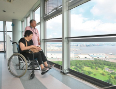 車いす専用駐車場とスロープ入口があり、館内すべての階にエレベーターがあります。