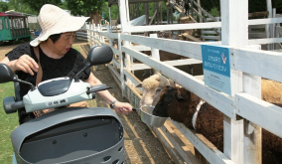 車いす・電動車いすの貸出あり(電動車いすは有料)。西口ゲートに勾配がきつい坂道あり、ふれあい動物の里から迂回できます。