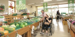 段差はなく、通路も広いので車いすを利用して買い物も可能。多目的トイレが広く、利便性が高い。