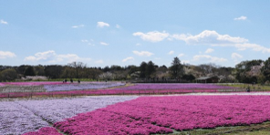 春のシバザクラ・ネモフィラ・ポピー(4月中~下旬)、秋のコスモス(10 月上~中旬)のほか、季節ごとにツツジやアジサイ等が咲き、四季を通じて自然とふれ合うことができます。園内には直売所も併設。