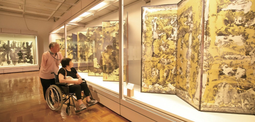 館内は段差はなく、車いすを利用していても十分に鑑賞ができます。車いすの貸出もあり。車いす駐車場あり。