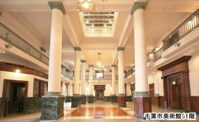 1階は旧川崎銀行千葉支店の建物を保存。浮世絵をはじめとする江戸時代から近代までの日本の絵画や版画、現代美術、房総ゆかりの作品をコレクションし、多彩な企画展を開催しています。