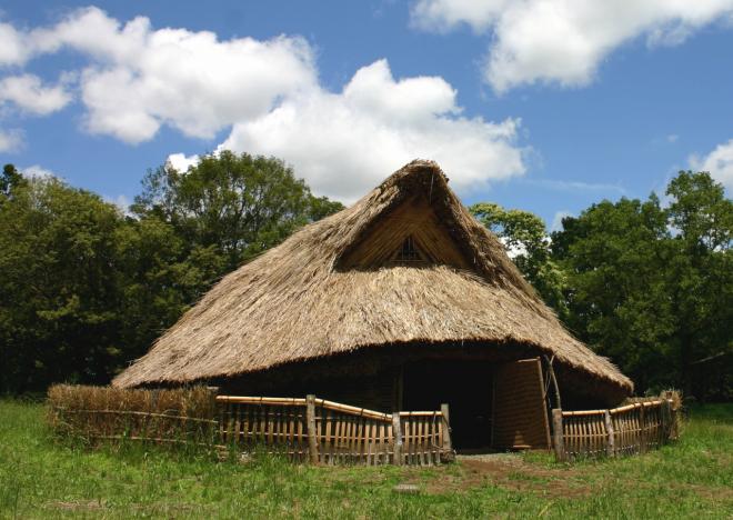 加曽利貝塚は、直径130mでドーナツ形をした縄文時代中期(約5,000年前)の北貝塚と、長径170mで馬のひづめの形をした後期(約4,000年前)の南貝塚が連結し、8字形をした日本最大級の貝塚です。貝塚のまわりには、当時の人々がくらしたムラの跡が広がっていることがわかっており、復原住居として一部が再現されています。また、南北の両貝塚とも貝層の堆積を観察することができる施設や、みつかった竪穴住居跡などを発掘調査の場面そのままの姿で保存した観察施設などもあり、公園全体で貝塚を体感することができるようになっています。現在、約13.4ヘクタールが国の特別史跡に指定され、市民の憩いの場として親しまれています。