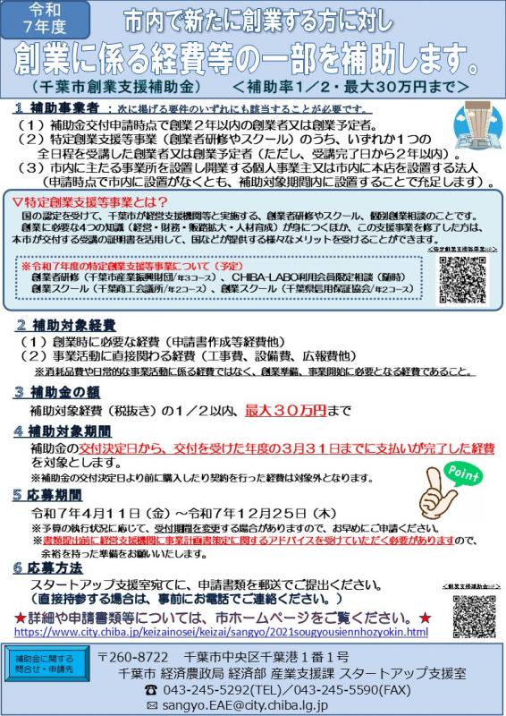 ホーム > しごと・産業 > しごと・産業・企業立地 > 経営・起業の支援 > 千葉市創業支援補助金のご案内