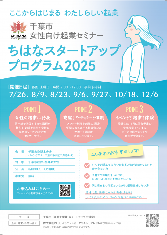 ホーム > しごと・産業 > しごと・産業・企業立地 > 経営・起業の支援 > 経営 > 令和7年度ちはなスタートアッププログラム(女性向け起業セミナー)