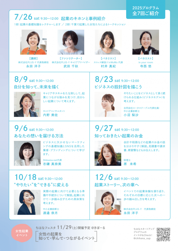 令和7年11月29日(土)に、千葉市で起業を考える女性のためのイベントとして、「ちはなフェスタ」を開催する予定です。