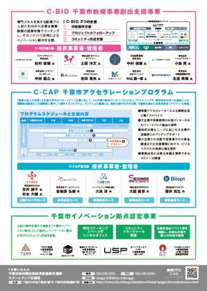千葉市では、市内経済の持続的な発展を実現するため、副業プロ人材活用による市内中小企業の新規事業展開等を支援する「新規事業創出支援事業(C-BID)」、市内スタートアップ企業の短期集中的な成長支援等を行う「アクセラレーションプログラム(C-CAP)」や、多様な主体が交流できる一定の要件を満たした市内の民間コワーキング施設を認定する「イノベーション拠点認定事業」を実施しています。