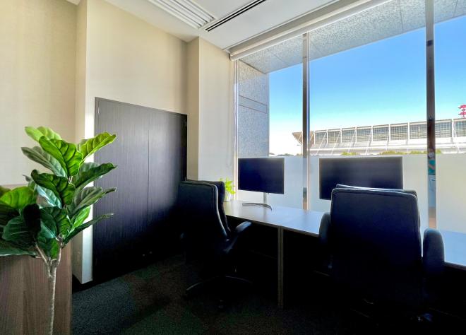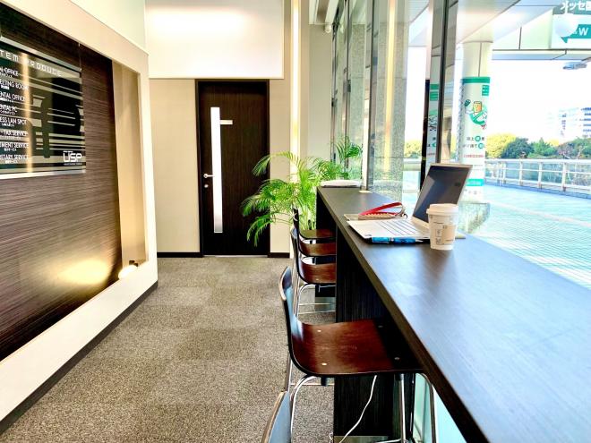 「空と海を身近に感じながら幕張新都心にオフィスを構える」オフィスサービスUSPは、幕張新都心の中心地、ワールドビジネスガーデン・マリブウエストタワー2階に12室の完全個室のレンタルオフィスと2室の会議室、コワーキングスペースを備えています。