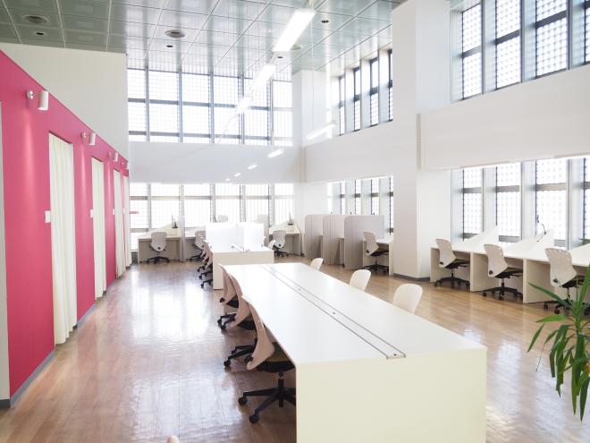 CB棟3階、B棟13階、CD棟5階の3フロアにわたって展開しており、総面積約1,490㎡はサービスオフィスとして千葉県内で最大級の広さを誇ります。