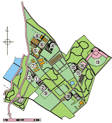 1.管理事務所 2.作業員詰所・土壌診断室 3.千葉地域農林業センター