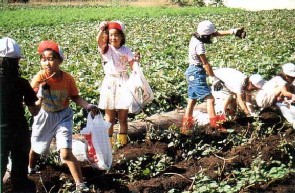 学童農園では、秋のサツマイモ・ニンジンの収穫体験ができ、多くの小学生が訪れます。