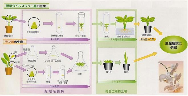 各種野菜の中には、選抜された優良系統の個体をバイオテクノロジーの技術を用いてウイルスフリー化しているものもあります。