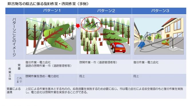 停電復旧に係る作業に支障となる障害物及び復旧作業に係る道路上の障害物の除去等並びに予防措置に関して、相互協力を行うことを規定しています。これにより、電力事業者との連携が強化され、災害発生時には迅速な道路啓開と電力復旧等の活動を行えるようになり、本市の災害応急対策の向上が期待されます。