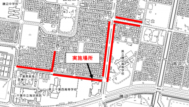 (千葉県立千葉西高等学校前通り~千葉県立磯辺高等学校周辺 歩道内)