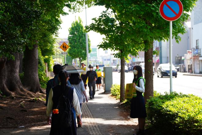 【高校生と一緒に】挨拶を通じて自転車のルールを呼びかけました!(外部サイトへリンク)(別ウインドウで開く)