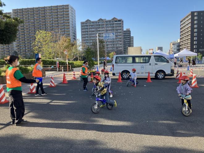 …ペダルなしの自転車に乗り、簡単なゲームを通じて、楽しみながら自転車の乗り方を学ぶ企画を行いました!