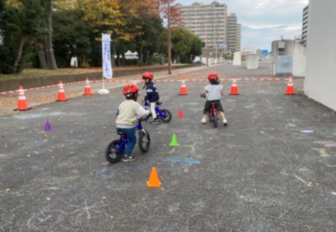 ランバイク(ペダルなし自転車)に乗り、簡単なゲームを通じて、楽しみながら自転車の乗り方を学びます。