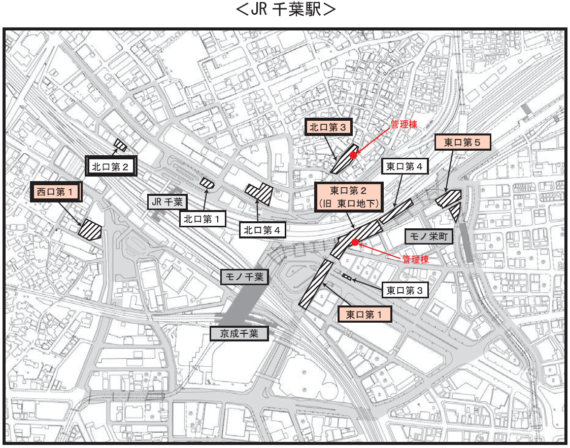 千葉駅東口第1(地下)・千葉駅西口第1の各階・海浜幕張駅第1・検見川浜駅第1の各階は、入口の機械ゲートを通過して入場します。