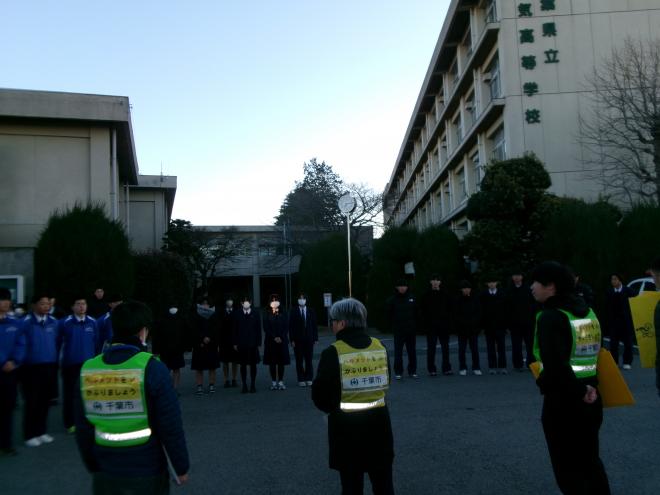 自転車を安全に利用してもらうため、「自転車の走り方ルール」や「ヘルメットの着用」についての街頭啓発を、沿道の高校に通う生徒等とともに行いました。