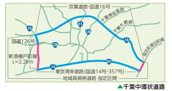 この千葉都市計画マスタープランにおいて、放射状の交流軸を形成し広域的に人、物、情報が行き交う拠点との交流を促進し、産業振興に資する産業拠点の維持・形成を図るとともに、千葉都心部の交通渋滞を緩和する道路として、千葉中環状道路の一部を構成する国道357号湾岸千葉地区改良事業や塩田町誉田町線(塩田町)が整備を推進する道路に位置付けられております。